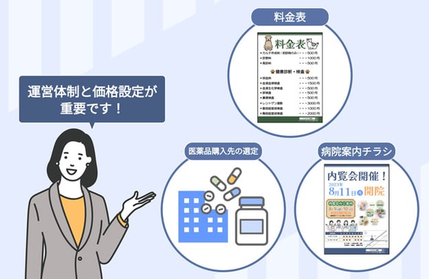 周辺に動物病院が何件あり、どのような病院なのか把握することが重要です。その際には診療時間、休診日、診療科目、設備、料金設定、採用条件、クチコミなどの情報をホームページでわかる範囲で調査しましょう。これにより、ご自身の病院の診療時間や休診日設定のよい参考になります。